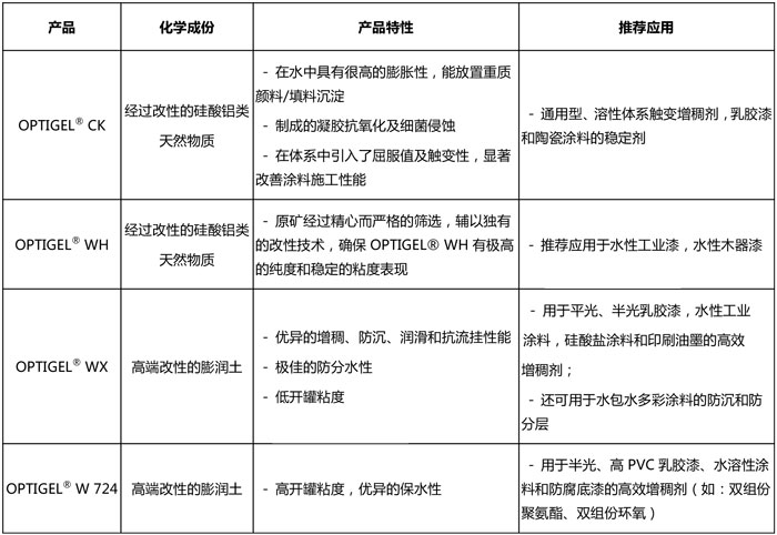清風(fēng)化工提供德國畢克化學(xué)(原洛克伍德ROCKWOOD)的OPTIGEL系列獨特的流變助劑。OPTIGEL系列選自天然水性膨潤土,經(jīng)過不同的改性從而產(chǎn)生不同的增稠流變狀態(tài),提供優(yōu)異的穩(wěn)定性、防沉性、增稠性、觸變性、保水性和潤滑性,可廣泛用于建筑涂料的造型漆和浮雕漆。同時還適用于水性工業(yè)涂料。